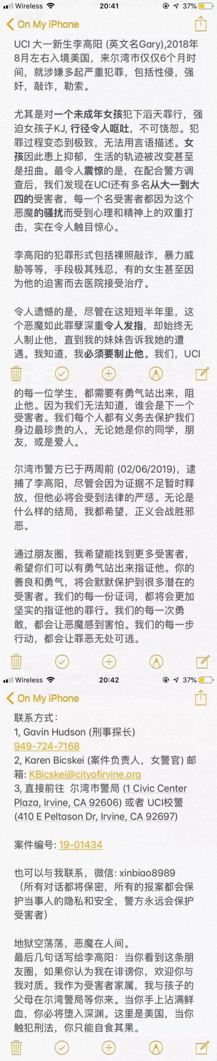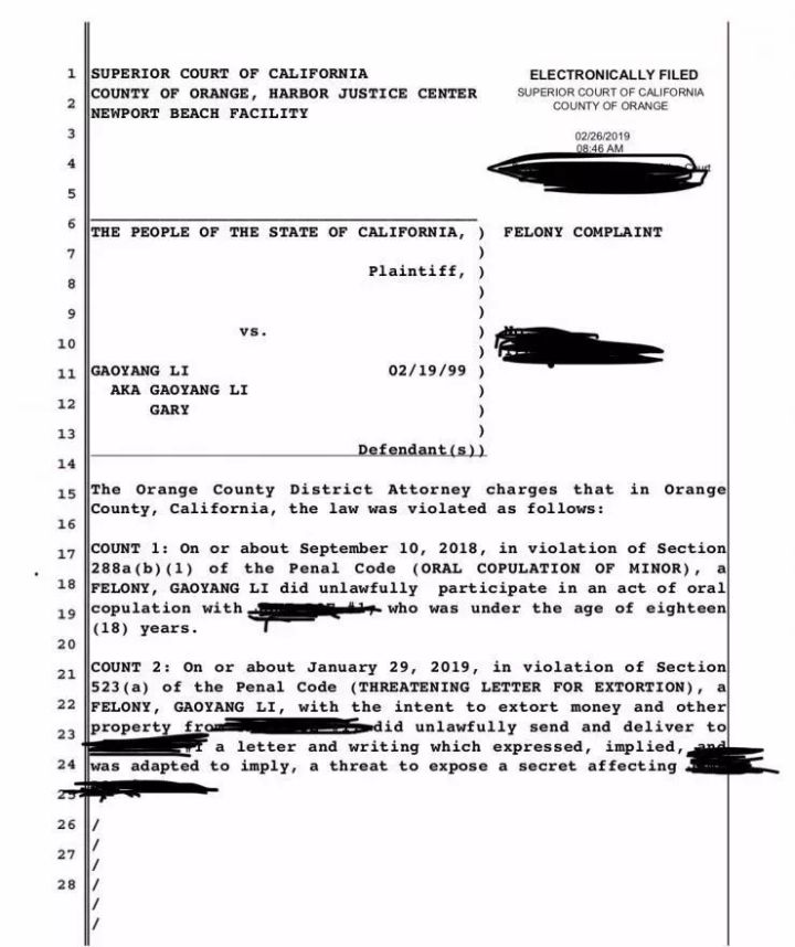 李高阳是18年8月左右去美国留学的,在短短的半年时间内,就被爆出性侵、强奸、敲诈、勒索多名女留学生,其中还包括一名16岁的未成年女生。