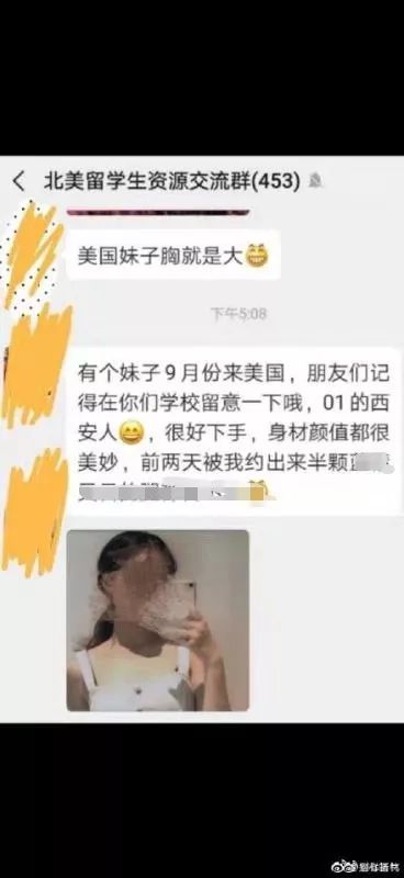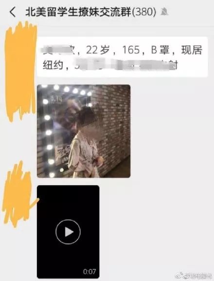 前段时间,网友在微博上曝光了一批微信群,这些群包括“北美留学生撩妹交流群”、“北美极品资源交流群”等等。
