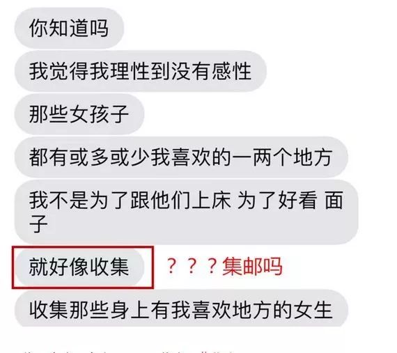 还说跟不同的女生上床就好像是在做收集。