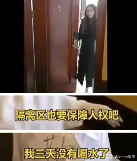 一位从意大利回来的女留学生坚持要喝矿泉水,否则就活不下去。在试图冲卡被拦截后,她以“隔离也要保障人权”为由怒怼警察。