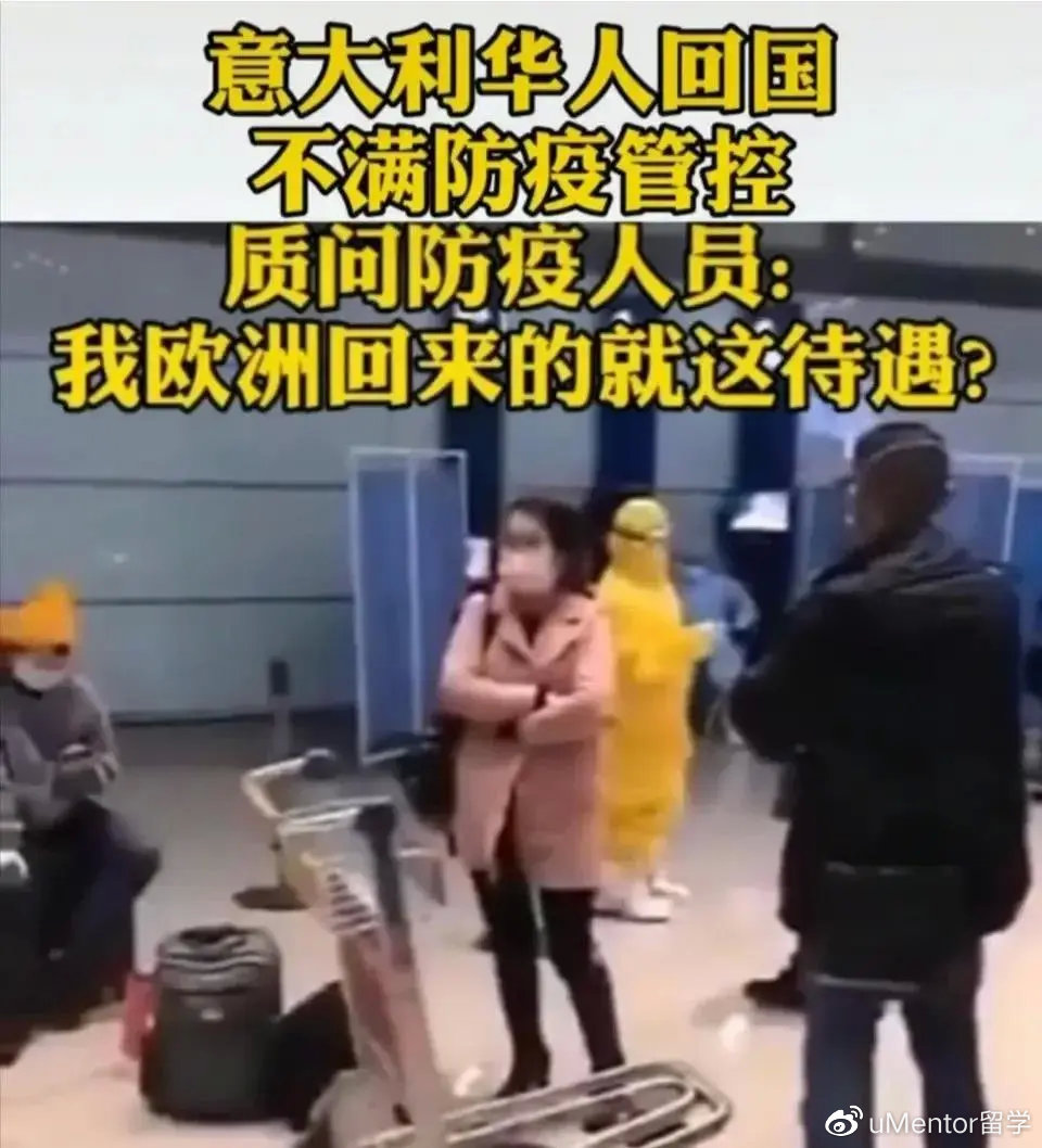 这位意大利回国的华人大声质问防疫人员“我欧洲回来的就这待遇?”