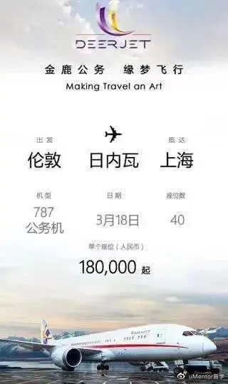 前天一张由787公务机执飞的伦敦经停日内瓦飞上海的航班海报,传遍了朋友圈,引起大家热议。