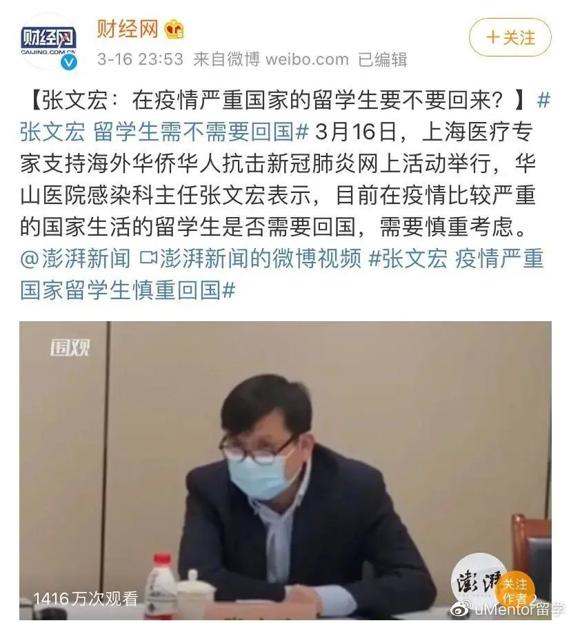 张文宏表示:“不管回不回,你要考虑两个问题,第一疫情要多长时间?回来是不是决定再也不回去了?如果疫情要延缓半年呢?你读书工作都不要了?第二如果不回来待在那里怎么办?”
