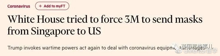 [美国试图迫使3M公司把在新加坡生产原本要供亚洲市场的口罩运往美国]