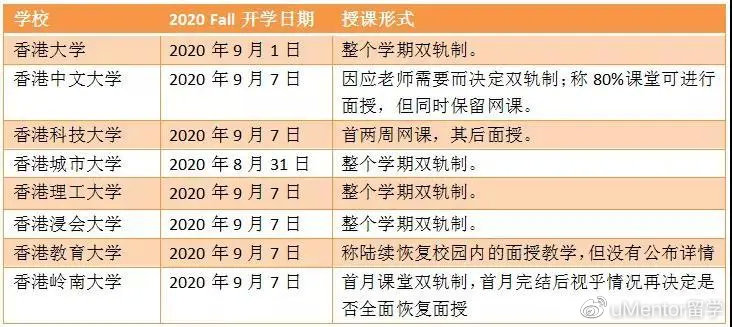 • 在香港的本科、研究生学生会开启面授课。对于部分必修课需要检查出勤率,在港学生需要回到校园进行面试课。